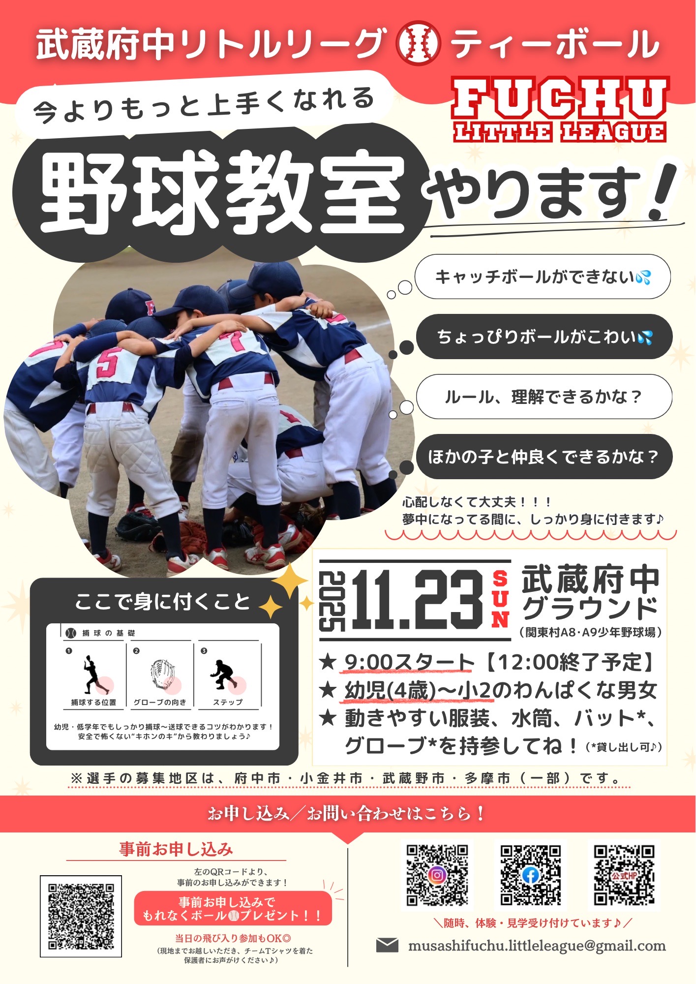 『これから野球を始めたい方』・『本格的にチームプレーをしたい方』など、どなたでも参加ください!